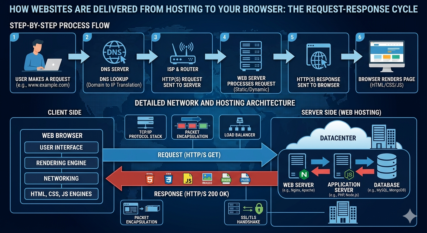 Understanding how websites are delivered is important, especially if you own a website, manage hosting, or are learning about web technology. From DNS lookups to server responses, every step plays a role in ensuring a smooth user experience.